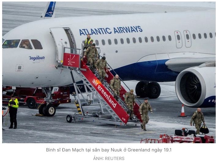 Sáng qua (20.1 theo giờ VN), Kênh Fox News đưa tin Đan Mạch đang tăng cường sự hiện diện quân sự tại Greenland, triển khai thêm binh sĩ đến vùng lãnh thổ chiến lược này ở Bắc Cực, trong bối cảnh căng thẳng với Tổng thống Mỹ Donald Trump leo thang. Thiếu tướng Søren Andersen, đứng đầu Bộ Tư lệnh Bắc Cực của Đan Mạch, cho hay khoảng 100 binh sĩ Đan Mạch đã đến thủ phủ Nuuk của Greenland hôm 19.1, và sau đó sẽ có thêm binh sĩ được triển khai đến khu Kangerlussuaq ở phía tây Greenland.