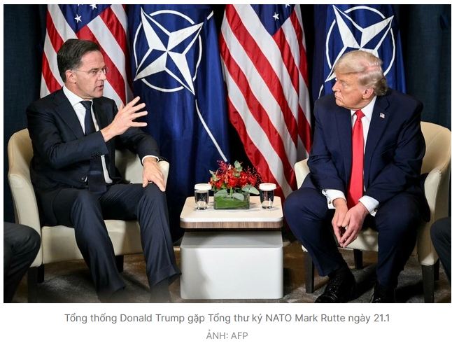 Nhà lãnh đạo Mỹ sau đó đã có cuộc gặp bên lề với Tổng thư ký NATO Mark Rutte. Sau cuộc thảo luận được các bên đánh giá là rất tích cực, ông Trump thông báo đã định hình khuôn khổ cho một thỏa thuận tương lai liên quan Greenland, và rộng hơn là toàn bộ vùng Bắc Cực. Chi tiết khuôn khổ trên không được tiết lộ. Ông Rutte cho biết vấn đề chủ quyền của Greenland không nằm trong nội dung trao đổi với ông Trump, theo AFP.