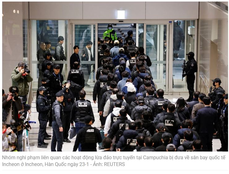 Theo Hãng tin Reuters, máy bay chở 73 nghi phạm nói trên – nhóm lớn nhất được đưa từ Campuchia về nước cho đến nay – đã hạ cánh xuống Sân bay quốc tế Incheon của Hàn Quốc vào ngày 23-1.