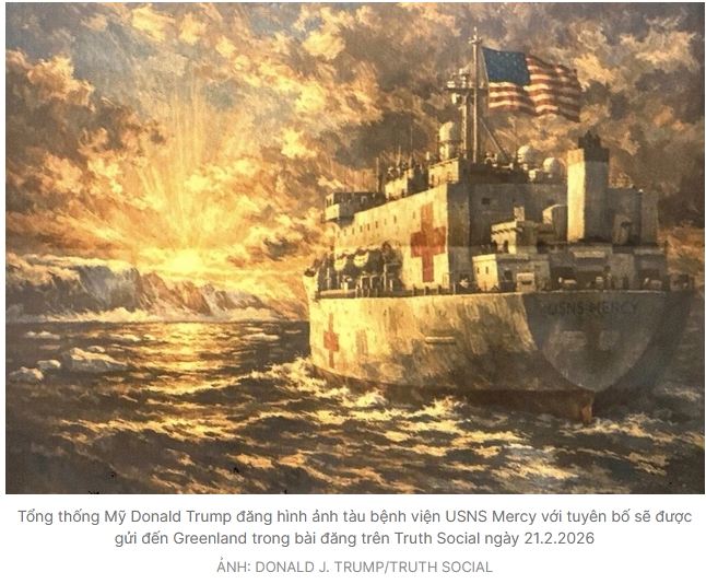 Ông chủ Nhà Trắng Donald Trump hôm 21.2 tuyên bố sẽ gửi “một tàu bệnh viện lớn tới Greenland để chăm sóc cho nhiều người bị bệnh và không được điều trị đầy đủ”. Tuy nhiên, ông không làm rõ liệu đây là kế hoạch cụ thể hay chỉ là đề xuất mang tính chính trị, theo AFP.