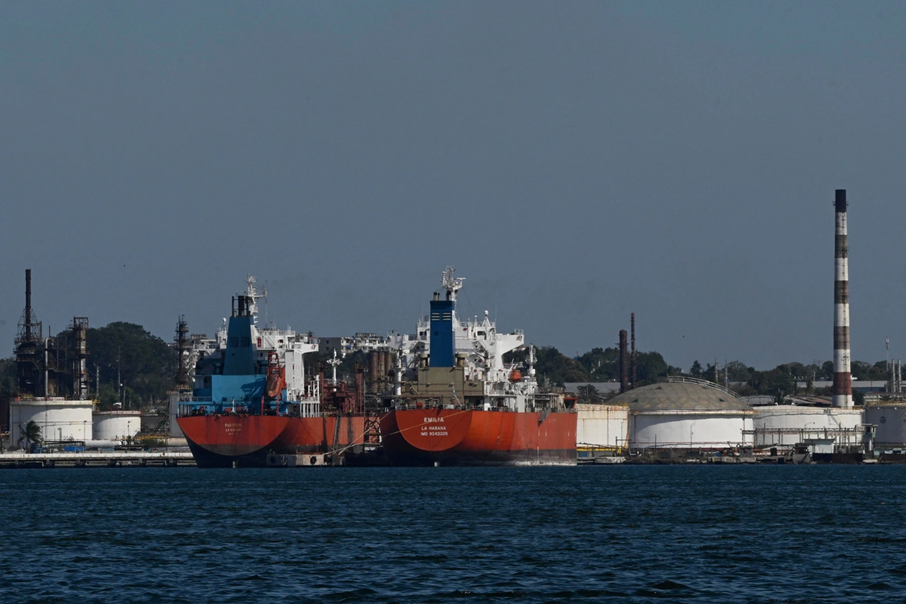 Các tàu đang neo đậu tại cầu cảng của nhà máy lọc dầu Nico Lopez ở vịnh Havana, Cuba