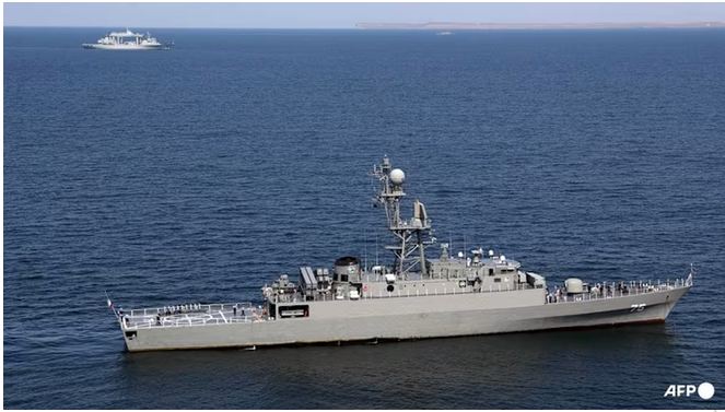 Tàu hộ vệ hải quân Cộng hòa Hồi giáo Iran IRIS Dena tham gia tập trận “Maritime Security Belt 2024” cùng Nga và Trung Quốc tại vịnh Oman ngày 12-3-2024 – Ảnh: AFP
